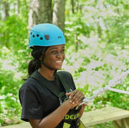 Stowe Heights is a traditional challenge course rather than an adventure park or canopy tour. With a few exceptions, the high course is typically not a stand-alone program. The staffing and belay team required at Stowe Heights is best suited for a group of 10-24 participants. A high course program will begin on the ground with some team development and “ground school” to prepare the team for climbing to height. There are different levels and routes to choose from, so people can choose their own adventure (level of challenge). Each person asks for the type of support they could use from their teammates, building off the low course programming. Team members support each other "on belay" as they climb up into the course.